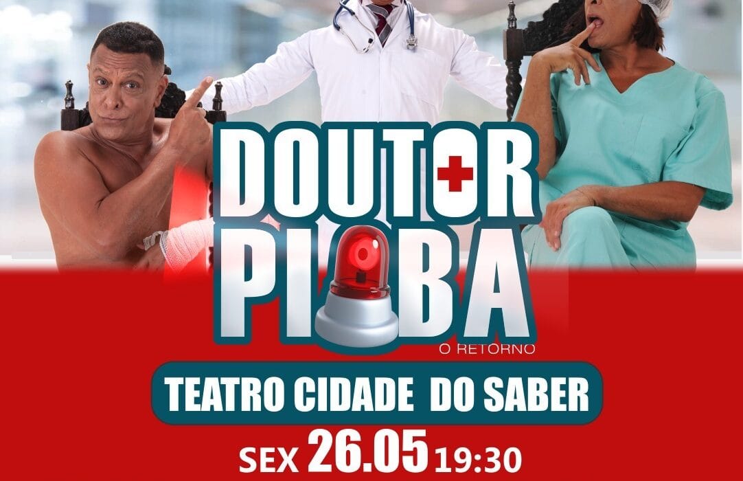 Nesta sexta-feira (26/5), às 19h30, o humorista Renato Piaba apresenta no Teatro Cidade do Saber o espetáculo “Doutor Piaba – O Retorno”, que comemora o sucesso histórico que foi esta produção nos anos 2000. A apresentação conta com patrocínio da Secretaria da Cultura (Secult). Os ingressos custam R$ 35 e podem ser adquiridos pelo site http://www.deubalada.com ou nas lojas Tindico, Sargo, Banca Santo Antônio e Helloa Joias.