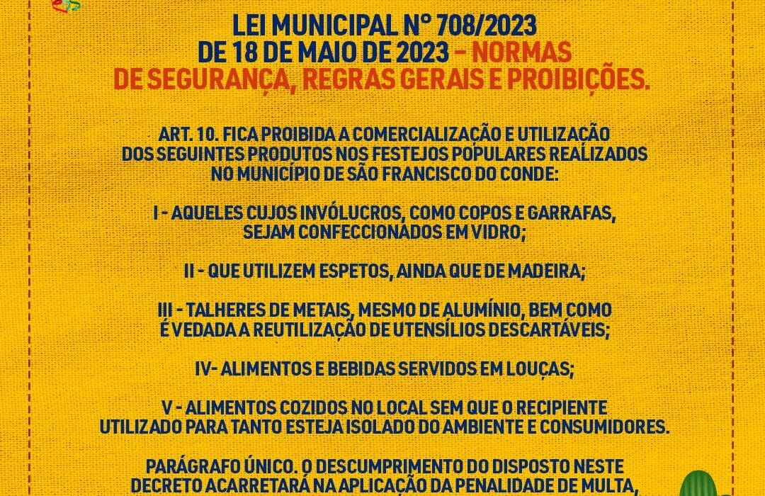 Bahia Cultura Em SFC: Arraiá Joia do Recôncavo 2023: confira as normas de segurança, regras gerais e proibições By Periclis Brito maio 29, 2023 0 Comments 3 anos atrás Facebook Twitter Pinterest Whatsapp Cloud StumbleUpon Print Share via Email A Prefeitura de São Francisco do Conde, por meio da Secretaria de Planejamento e Desenvolvimento Econômico – SEPLANDEC informa as normas de segurança, regras gerais e proibições pertinentes ao Arraiá Joia do Recôncavo 2023.